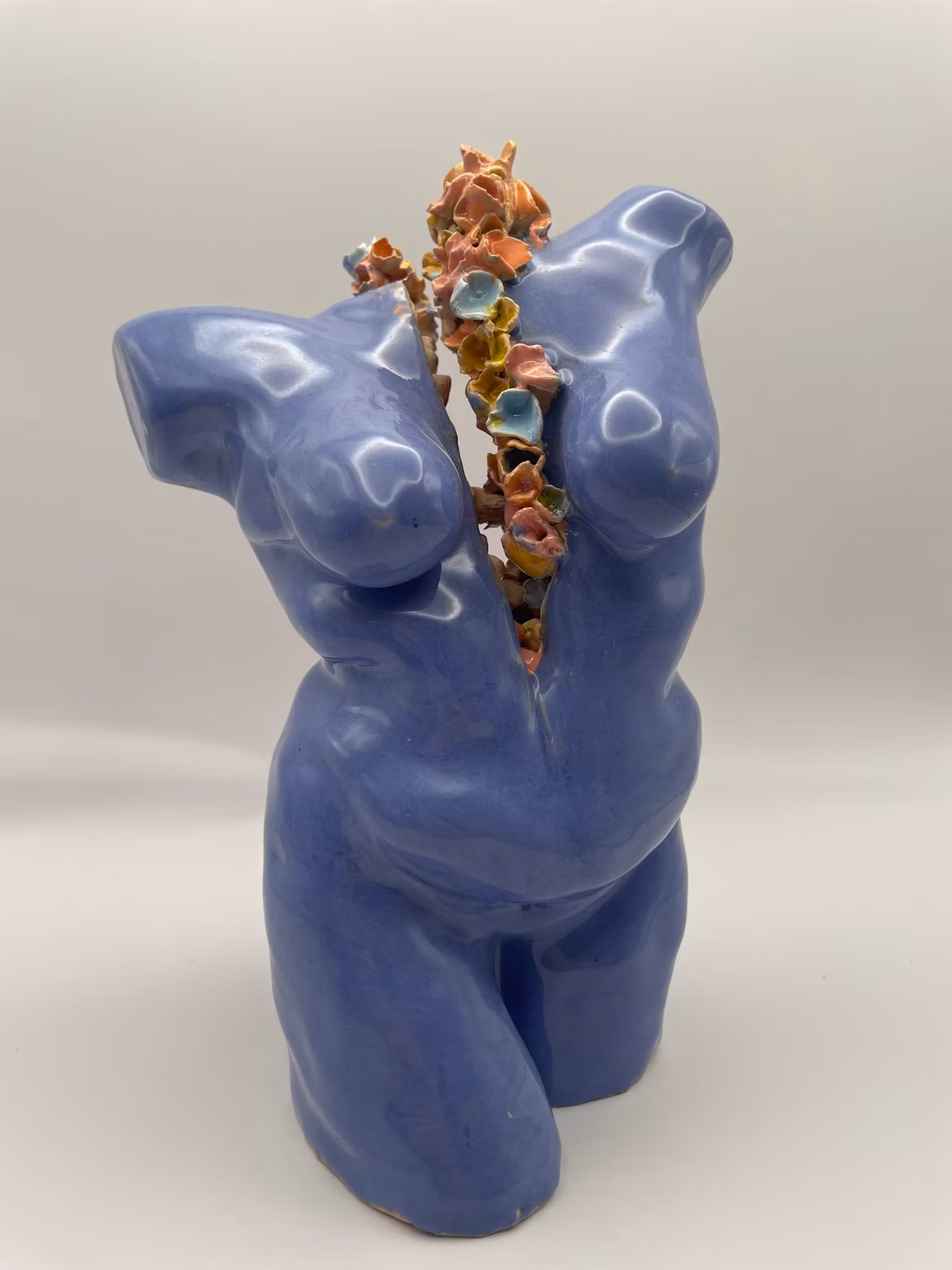En ståtlig kvinnokropp, stark och majestätisk. Men trasig, eller? Vi vrider oss och anpassar oss. Vi är i ständig utveckling. Ibland ser jag på oss människor som blomster, hur vi går från frö till blomma för att sedan knoppa om och komma åter. Men jag tycker att vi generellt har svårt att acceptera denna resa. Vad betyder det att lära sig av sina misstag? Att förändras och växa? Går man i tu eller byter vi bara skal? Har man verkligen dött om det är för att födas på nytt?