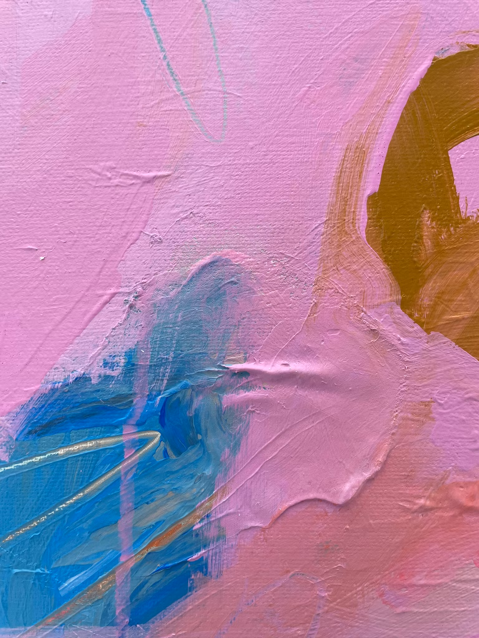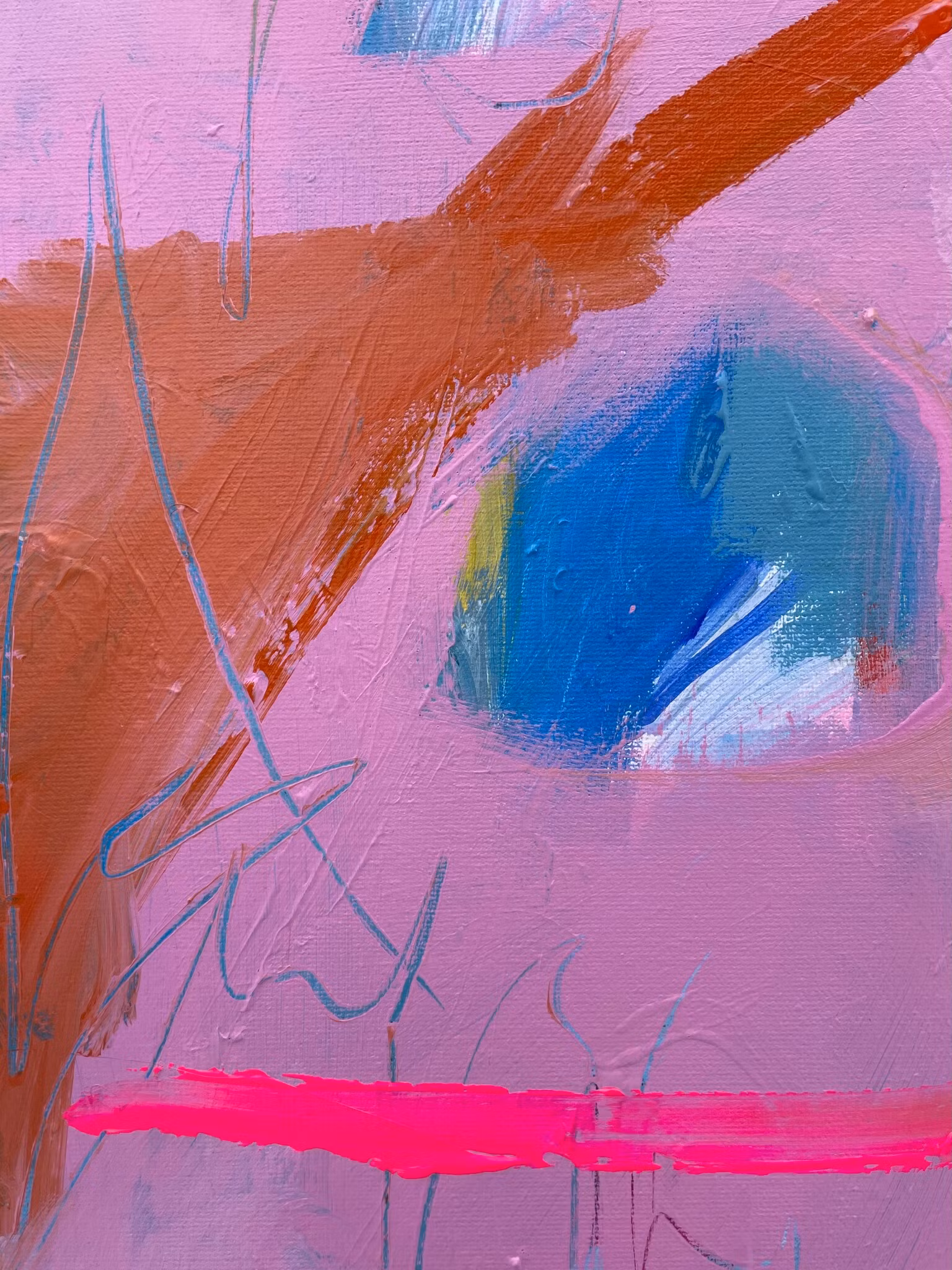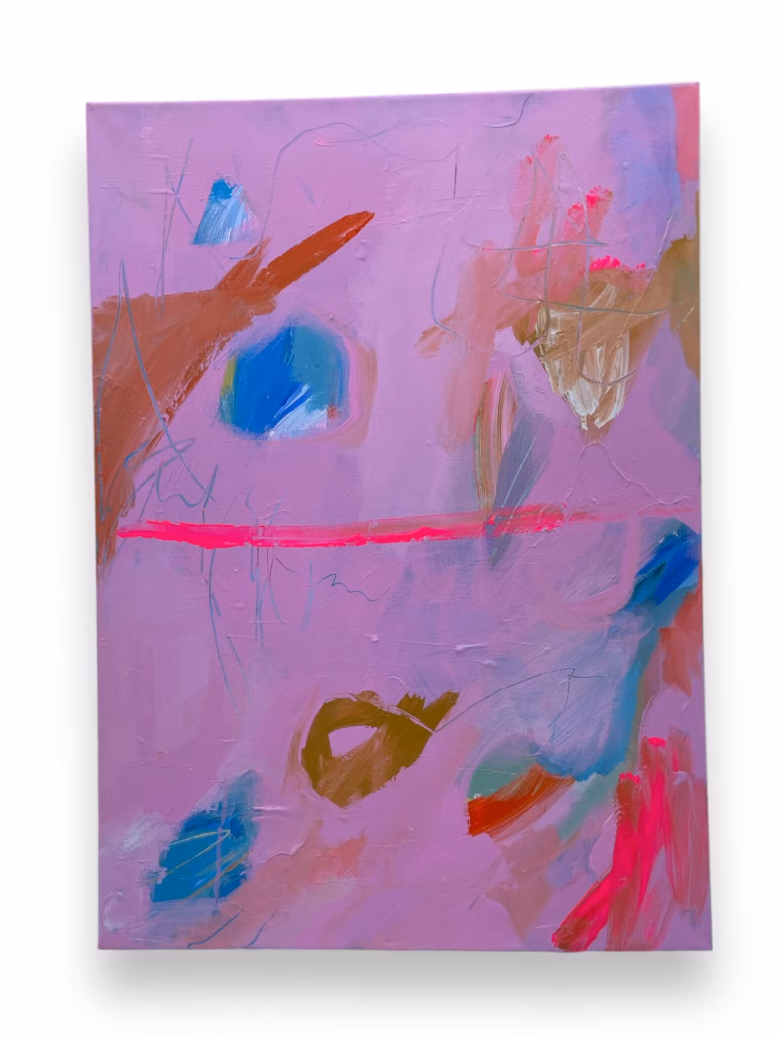 Lekfull tavla i rosalila botten. Pastellnyanser med några detaljer i skrikrosa.Den gav mig en känsla av dom rosa munkarna på affären, därav namnet!50x70