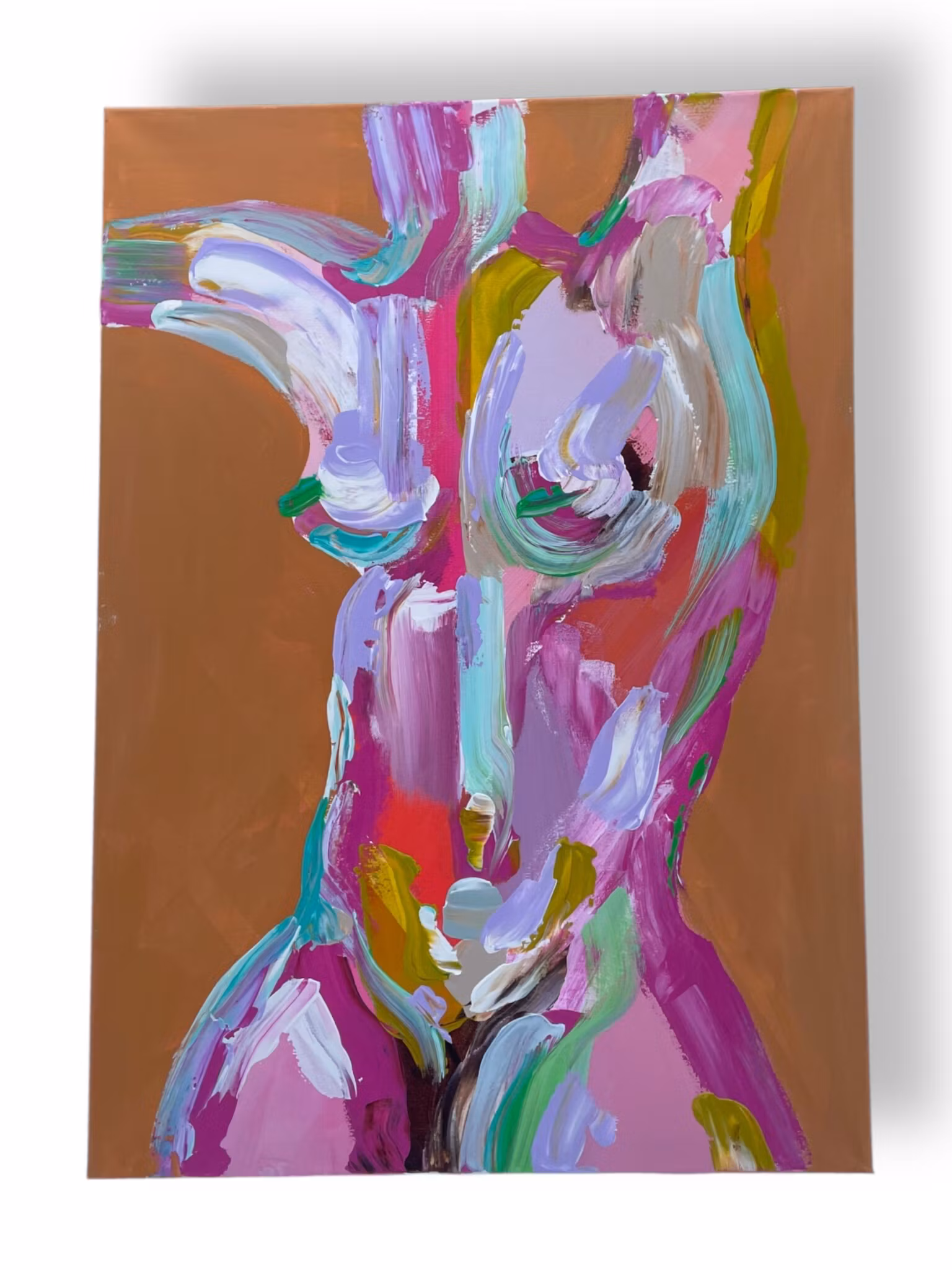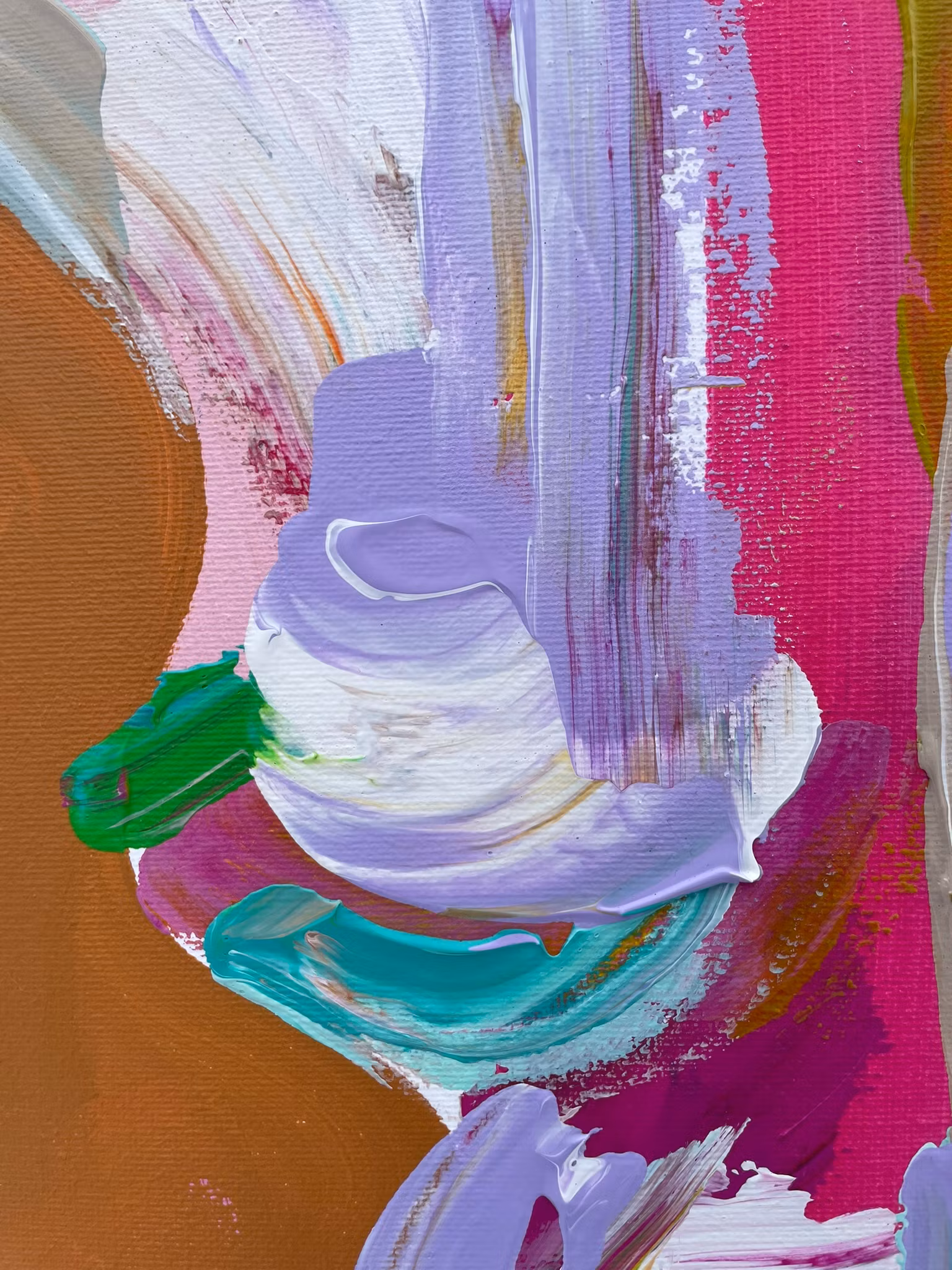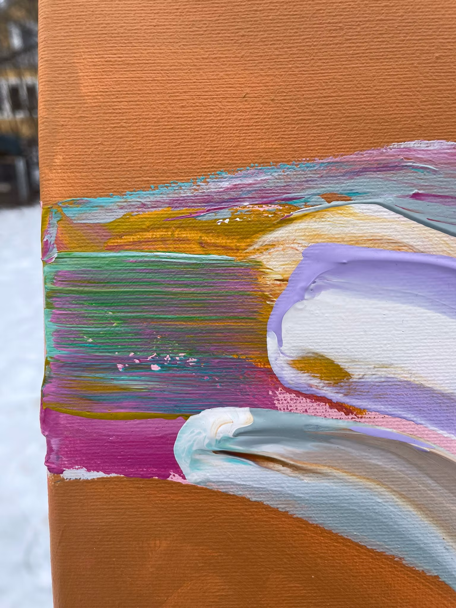 Kristin är inte rädd för pinsam tystnad. Senapsgul botten med uppseväckande detaljer i stark grön och orange. Finns ett lockande lugn i hennes mer gräddiga toner av lila men luras ej.