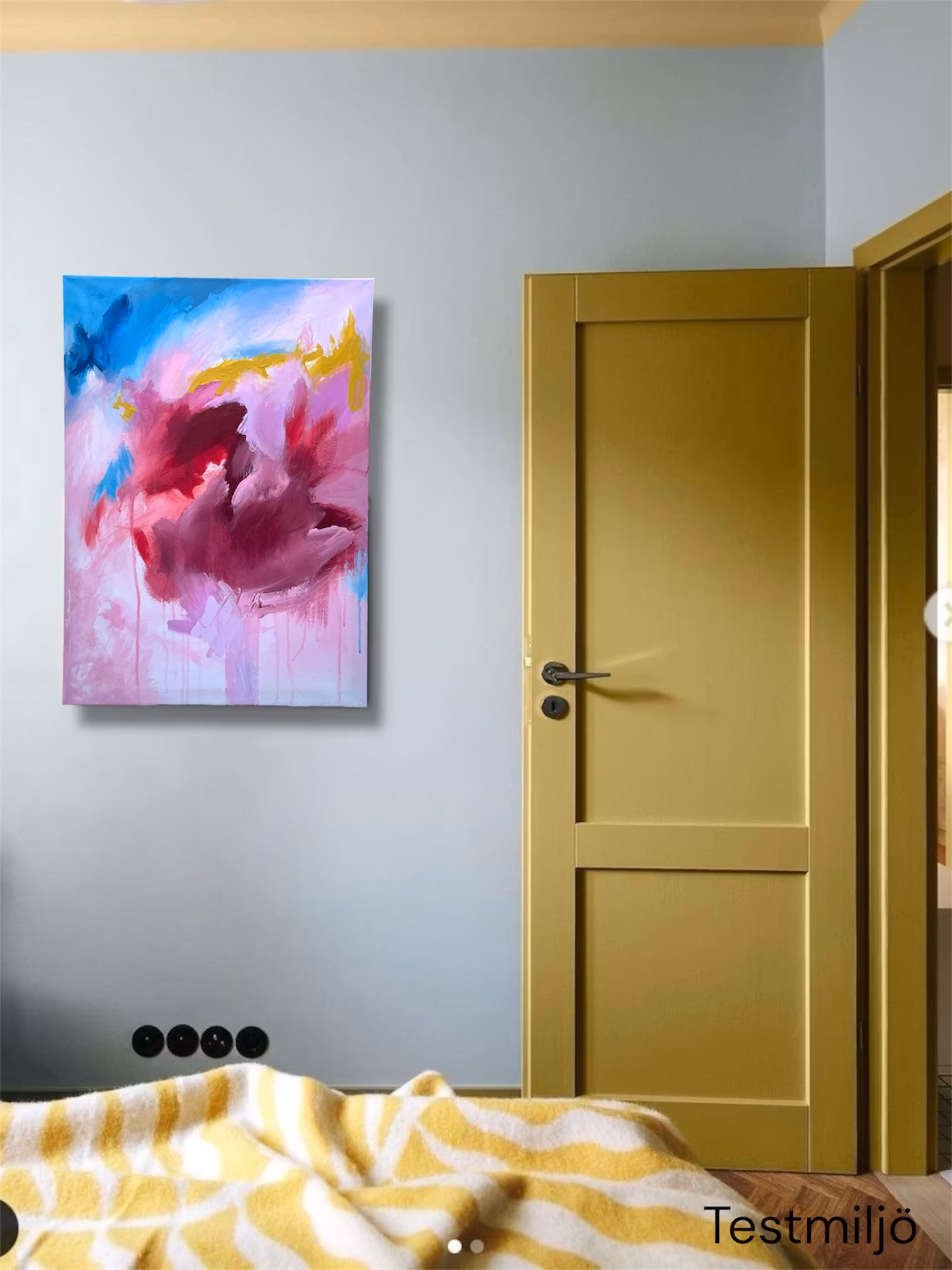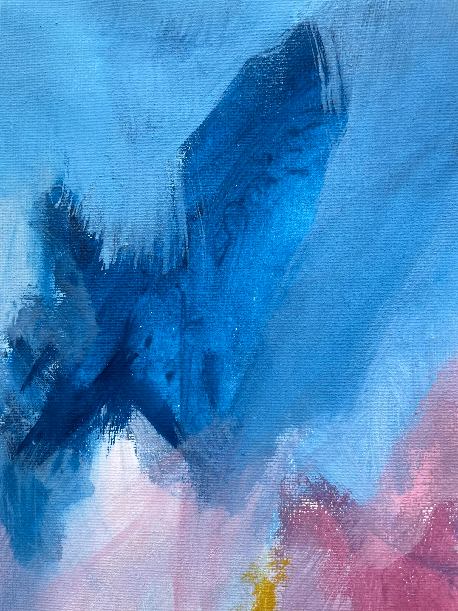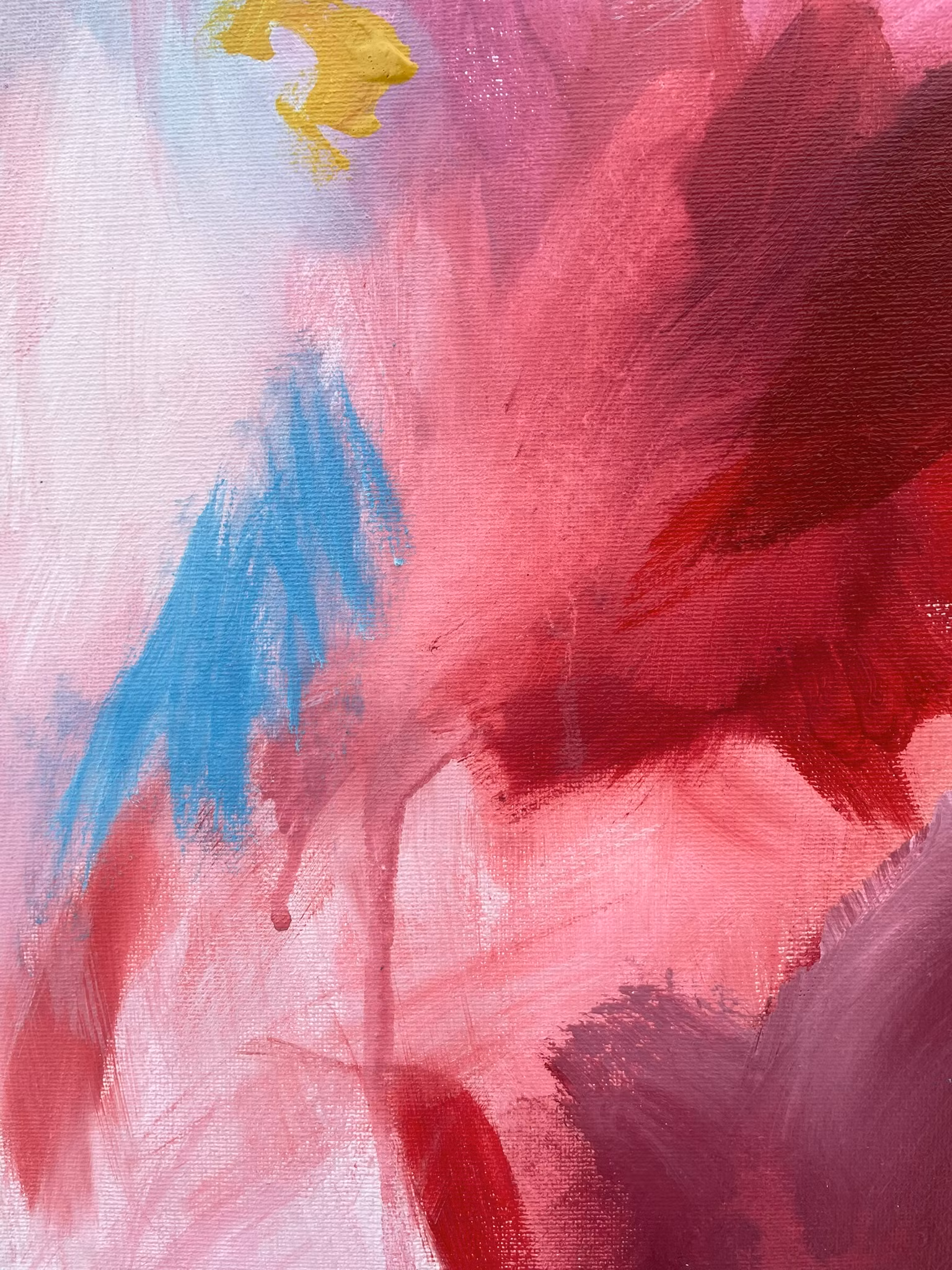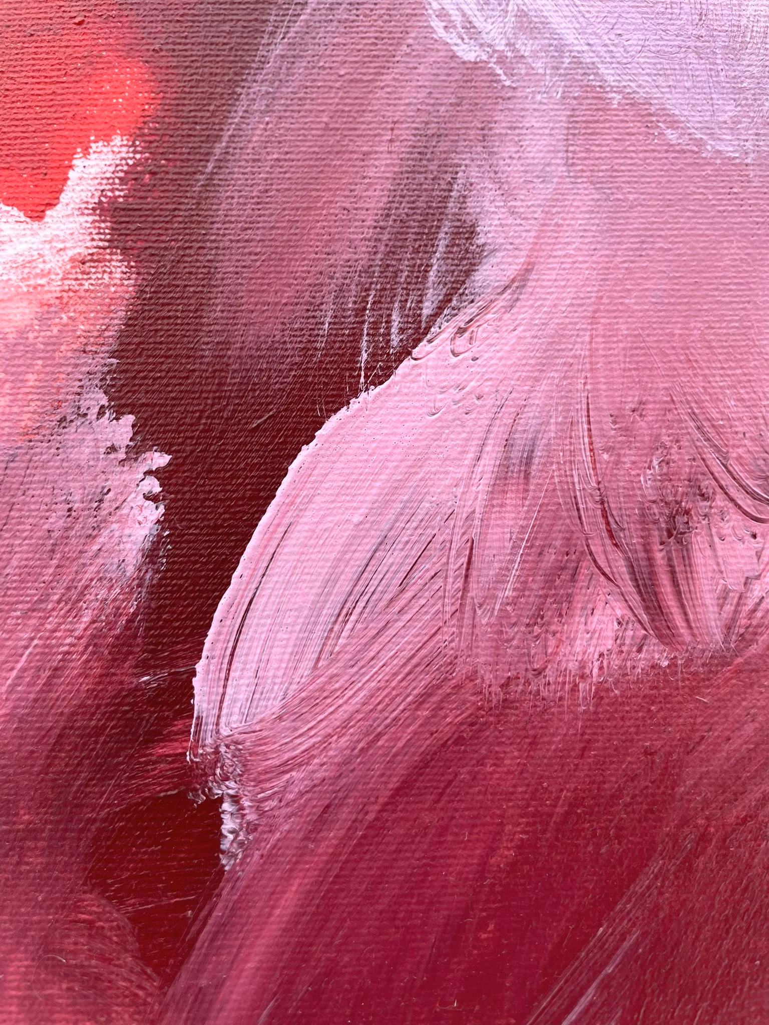 Det döljer sig olika saker för alla i abstrakta verk, för mig trädde det i denna fram en svan. Djupröda nyasner med dovrosa och blåatoner.