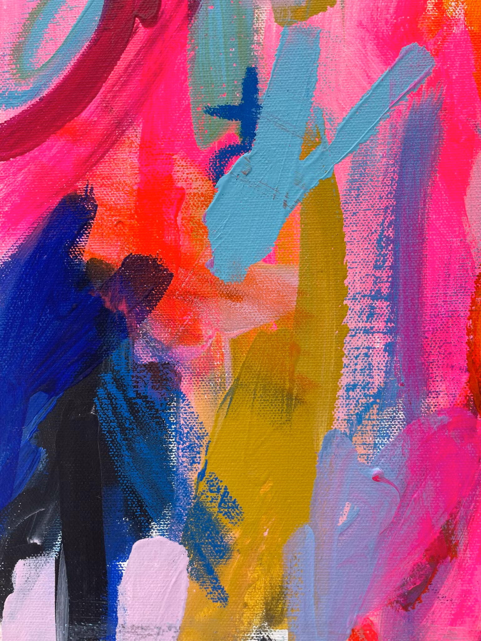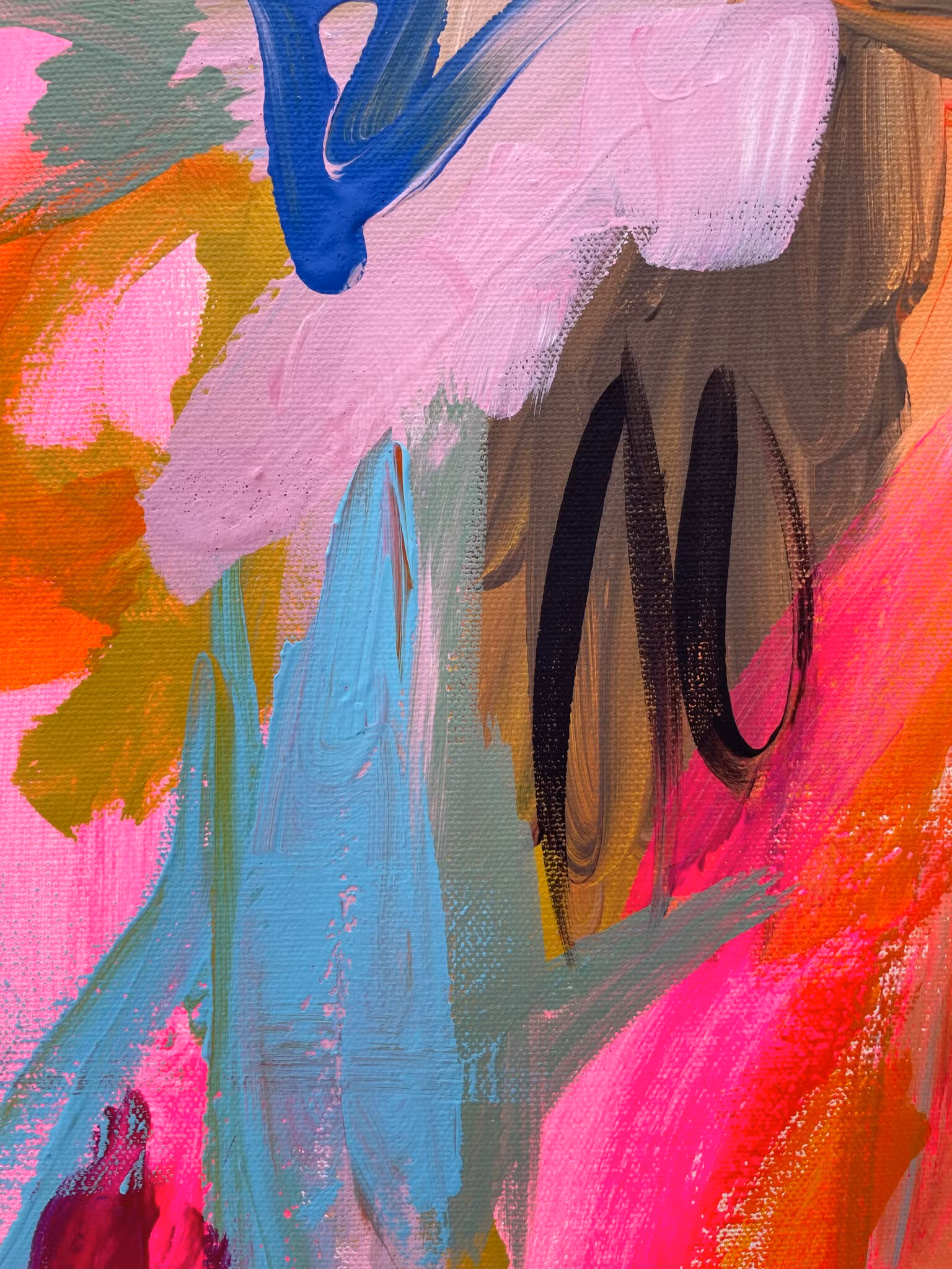 En färgstark tavla med dolda budskap, inte en tavla för den fega utan hon tar plats!